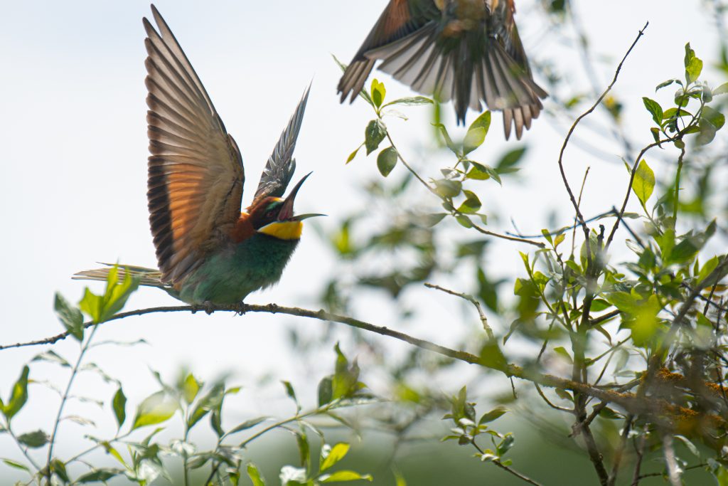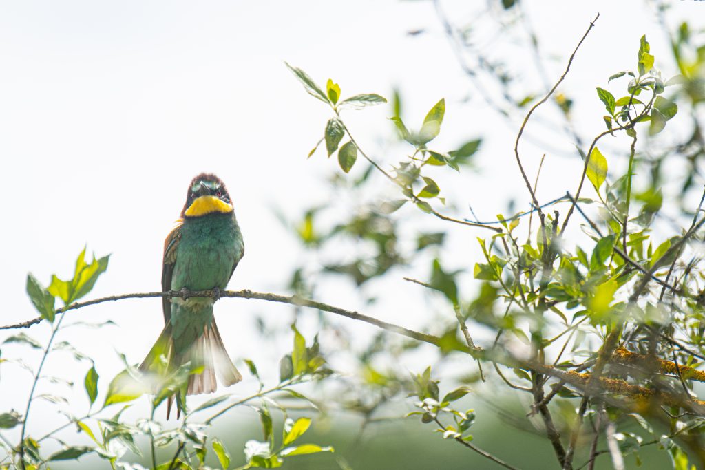 Le guêpier d’Europe, lui, c’est un festival à lui tout seul. Vert, jaune, bleu, rouge – il a tout mis. Zéro retenue. Une diva plumée, adepte du perchoir dramatique et des poses profil gauche. Toujours impeccable, même quand il chasse.