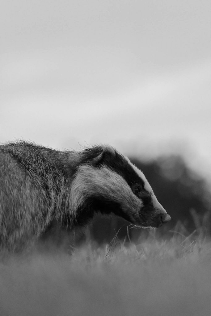 Le noir et blanc, lui, fait le reste : chaque poil devient poésie, chaque corne une déclaration d’indépendance. Et le blaireau ? Un véritable anti-héros, immortalisé comme s’il sortait d’un polar scandinave.